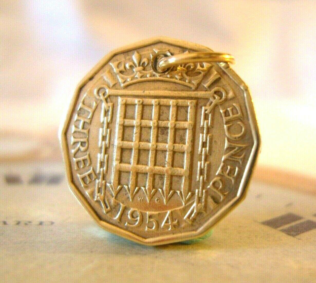 Vintage Pocket Watch Chain Fob 1954 Queen Elizabeth Threpenny Bit Coin Fob