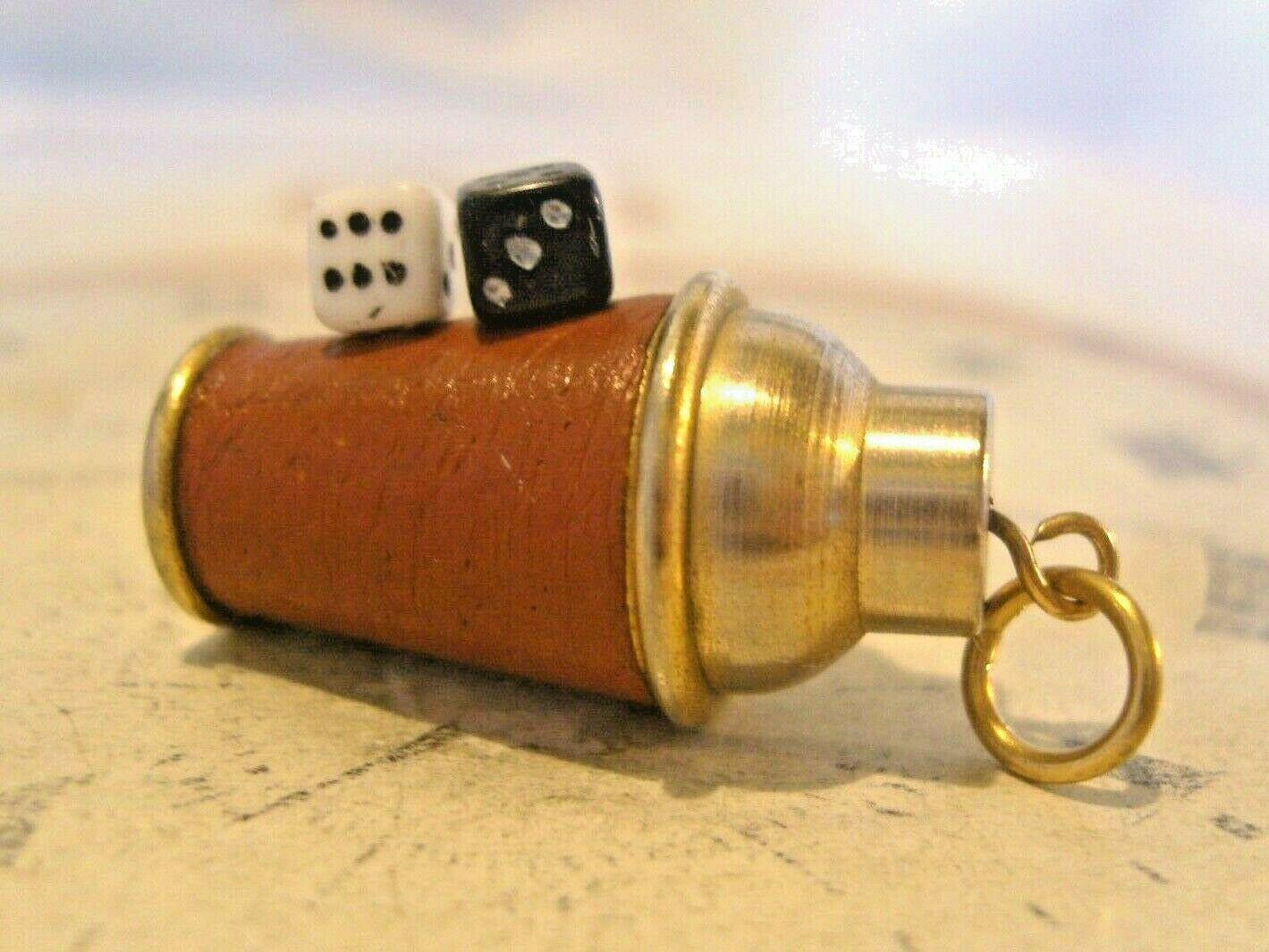Vintage Pocket Watch Chain Fob 1960s Brass & Leather Gambling Fob With Dice