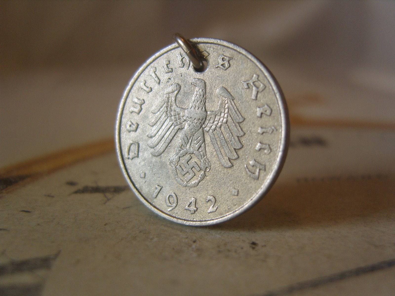 Vintage Pocket Watch Chain Fob WW2 1942 German Reich 10 Pfennig Coin with Eagle
