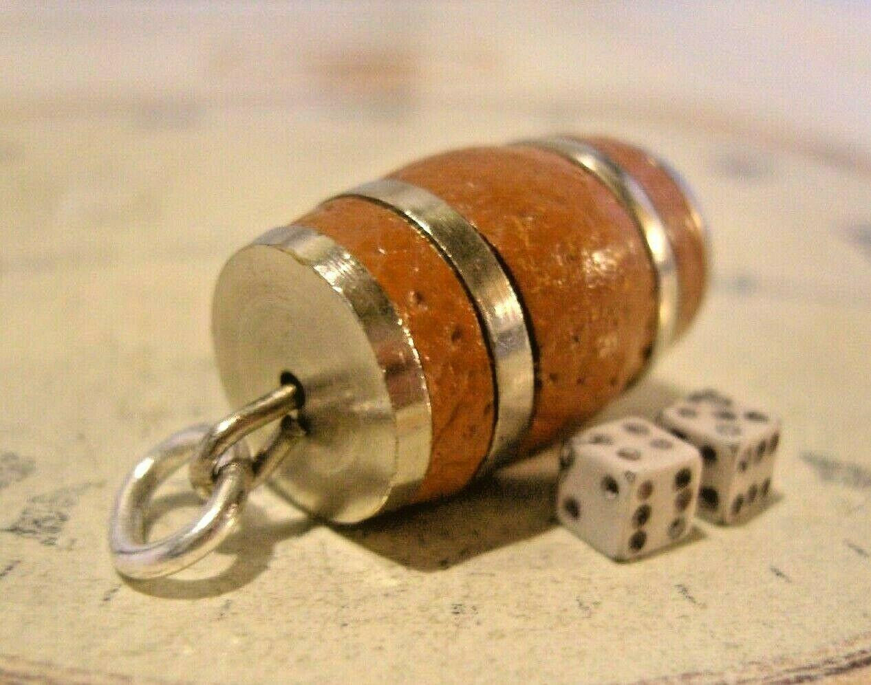 Vintage Pocket Watch Chain Gambling Fob 1960s Silver Chrome & Leather Fob With Original Dice