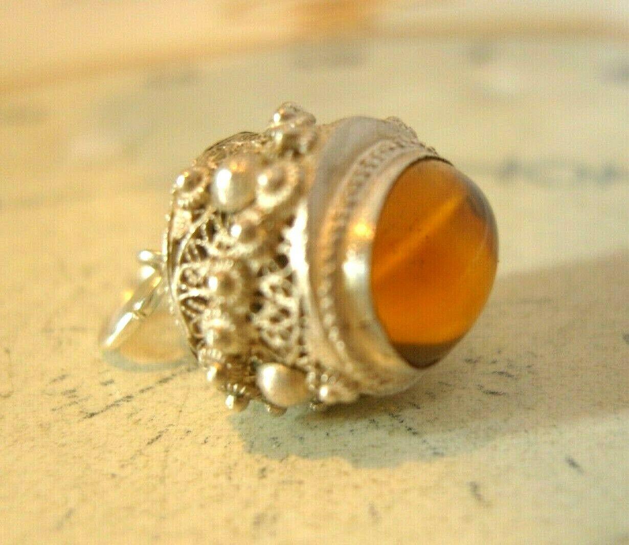 Vintage Pocket Watch Chain Silver Fob 1950s Victorian Revival Stone Set Ball Fob