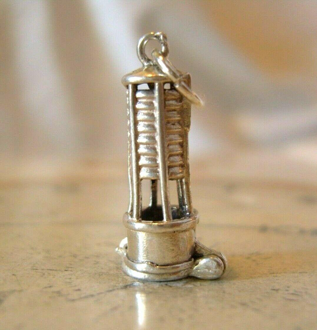 Vintage Pocket Watch Chain Silver Fob 1960s Miners Lamp With Canary Bird Fob
