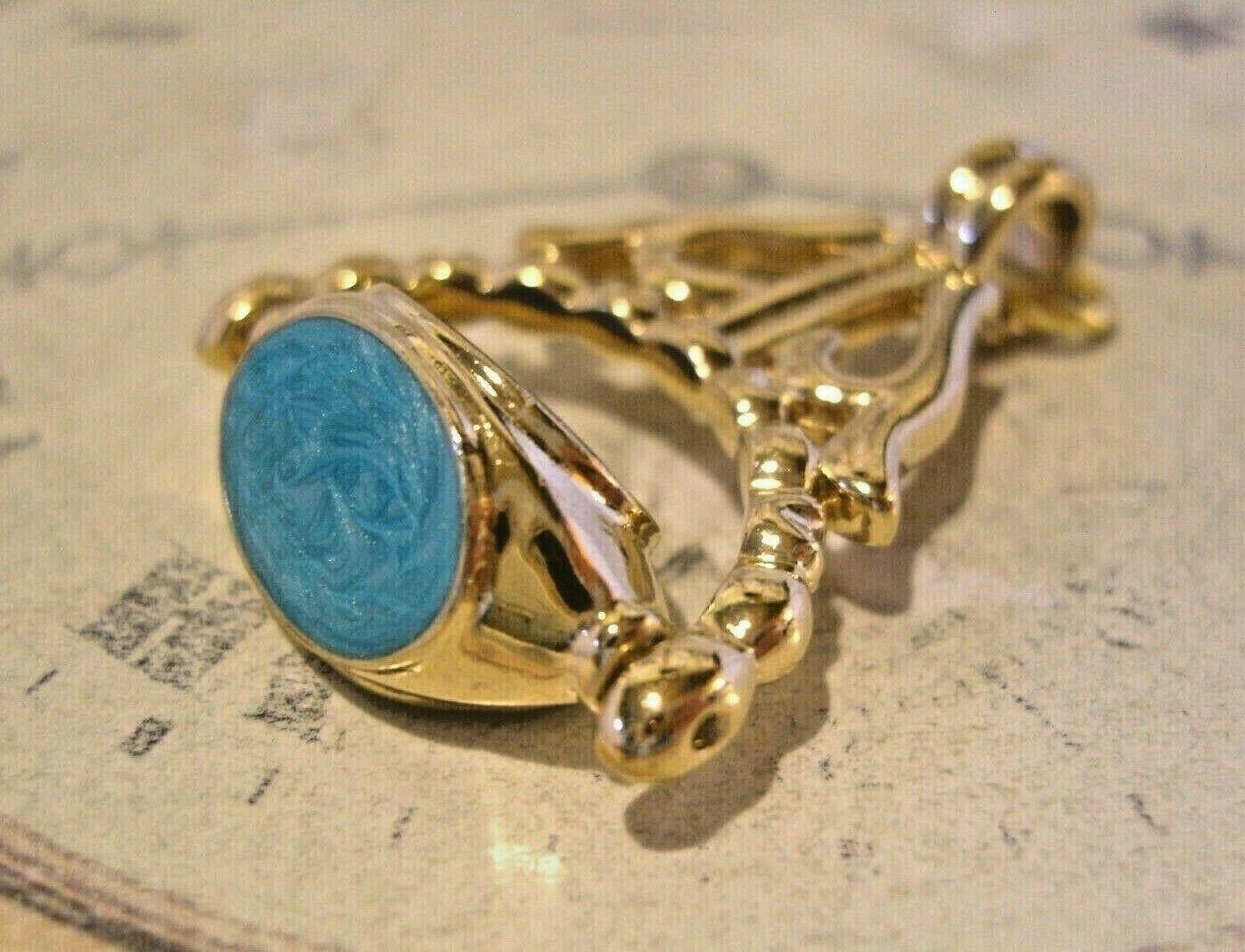 Vintage Pocket Watch Chain Spinner Fob 1960s 12ct Gold Plated & Three Stone Fob