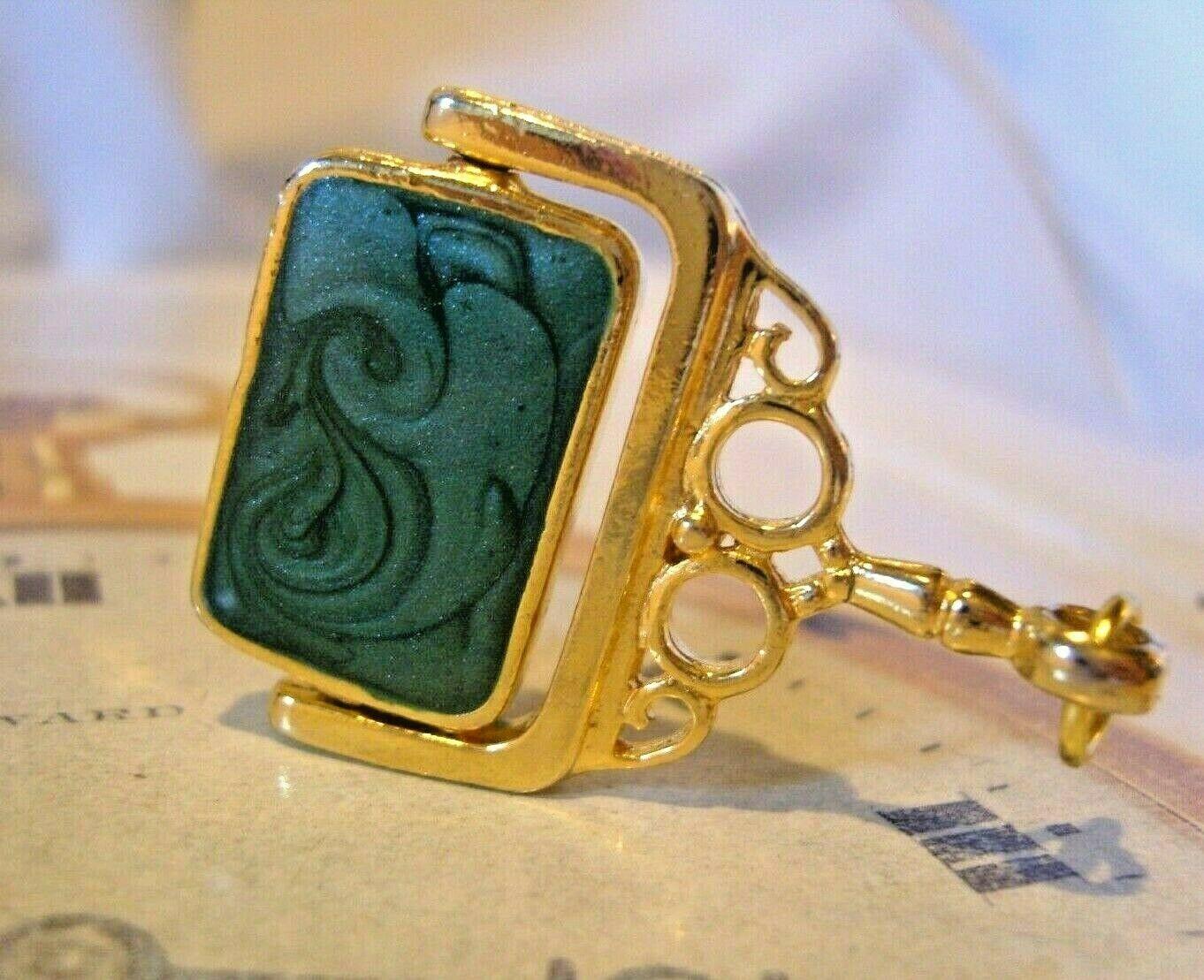 Vintage Pocket Watch Chain Swivel Fob 1960s Large 10ct Gold Plated & Two Stone Fob