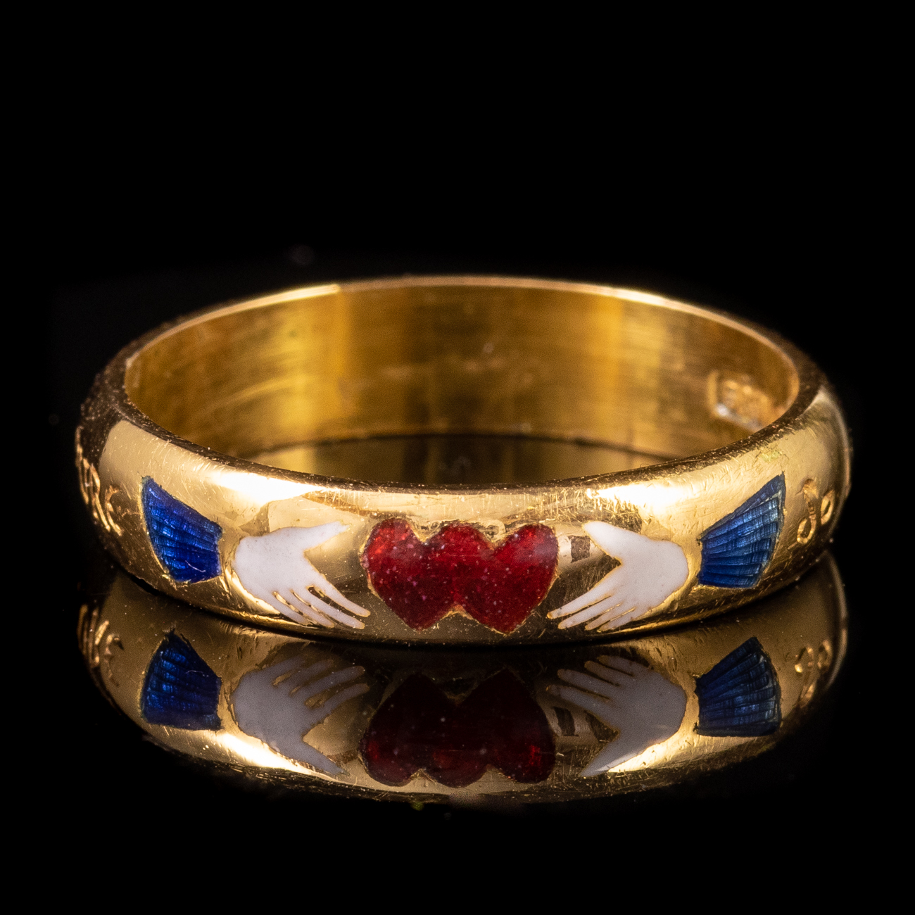 Vintage Posy Claddagh Enamel Ring 22ct Gold Dated London 1972