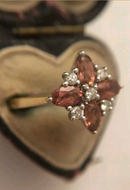 Vintage Pretty Tourmaline & Diamond Large Dress Ring Yellow Gold Cluster