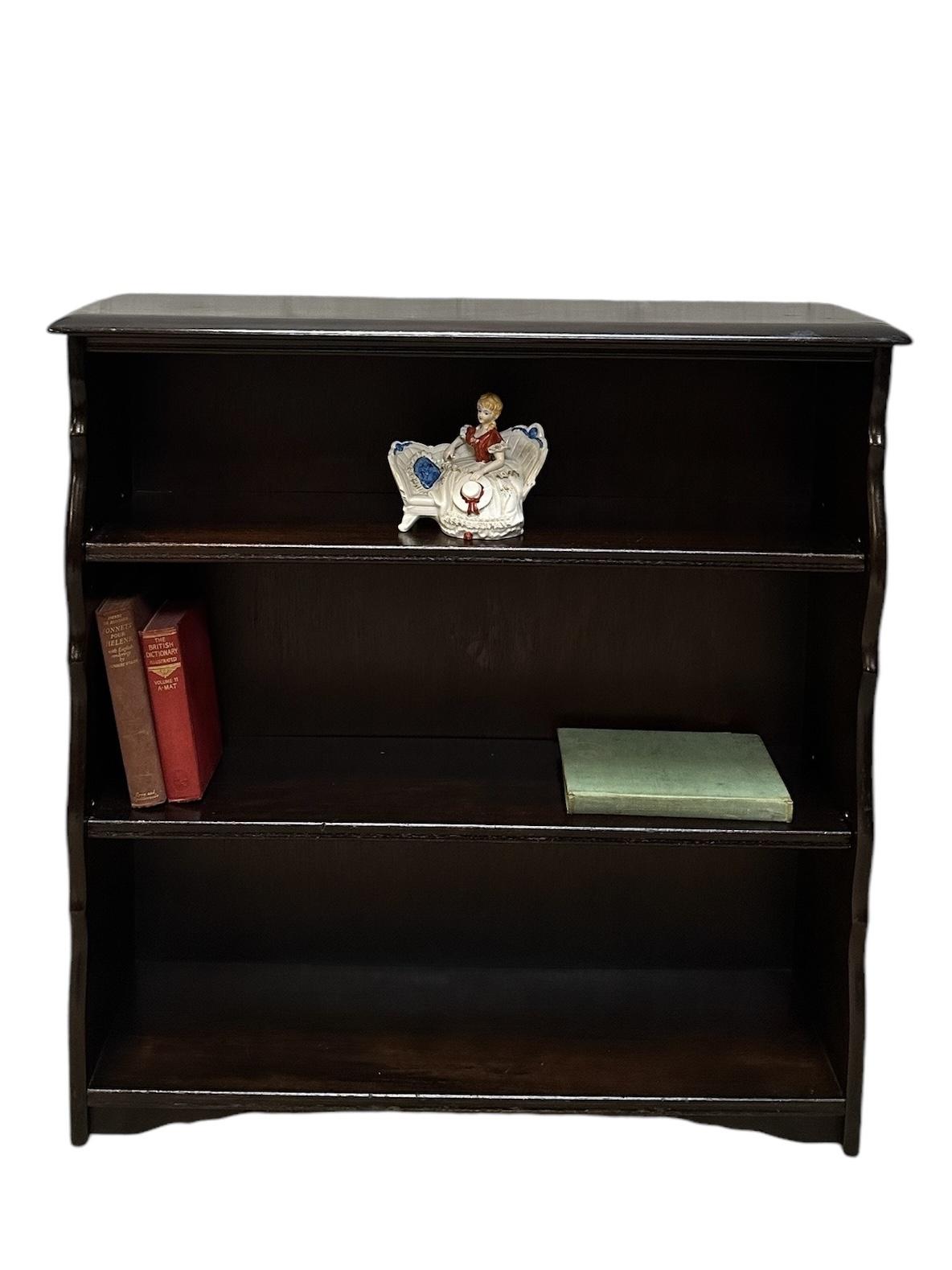 Vintage Priory Oak Open Bookcase c 1960 / Dark Oak