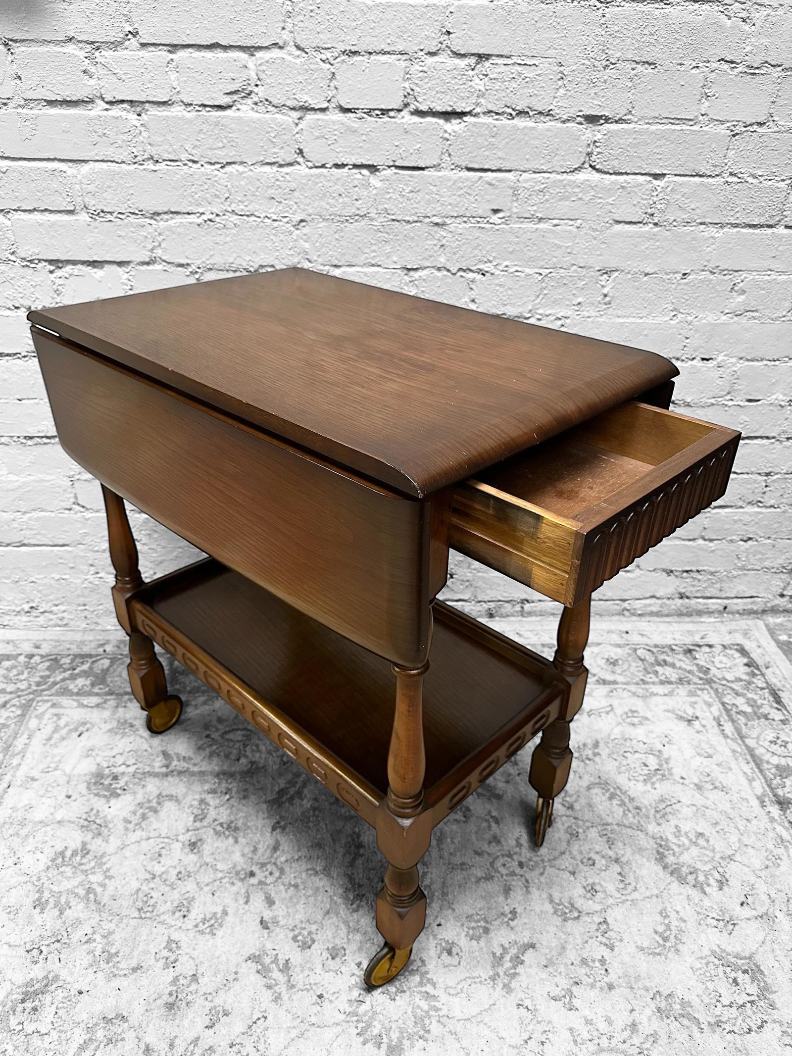 Vintage Priory Oak Tea Trolley c.1960 / Hidden Drawer / Brown Oak