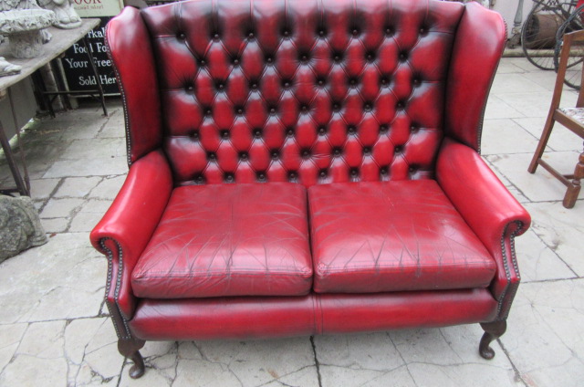 Vintage Queen Anne Style Deep Buttoned Leather Sofa