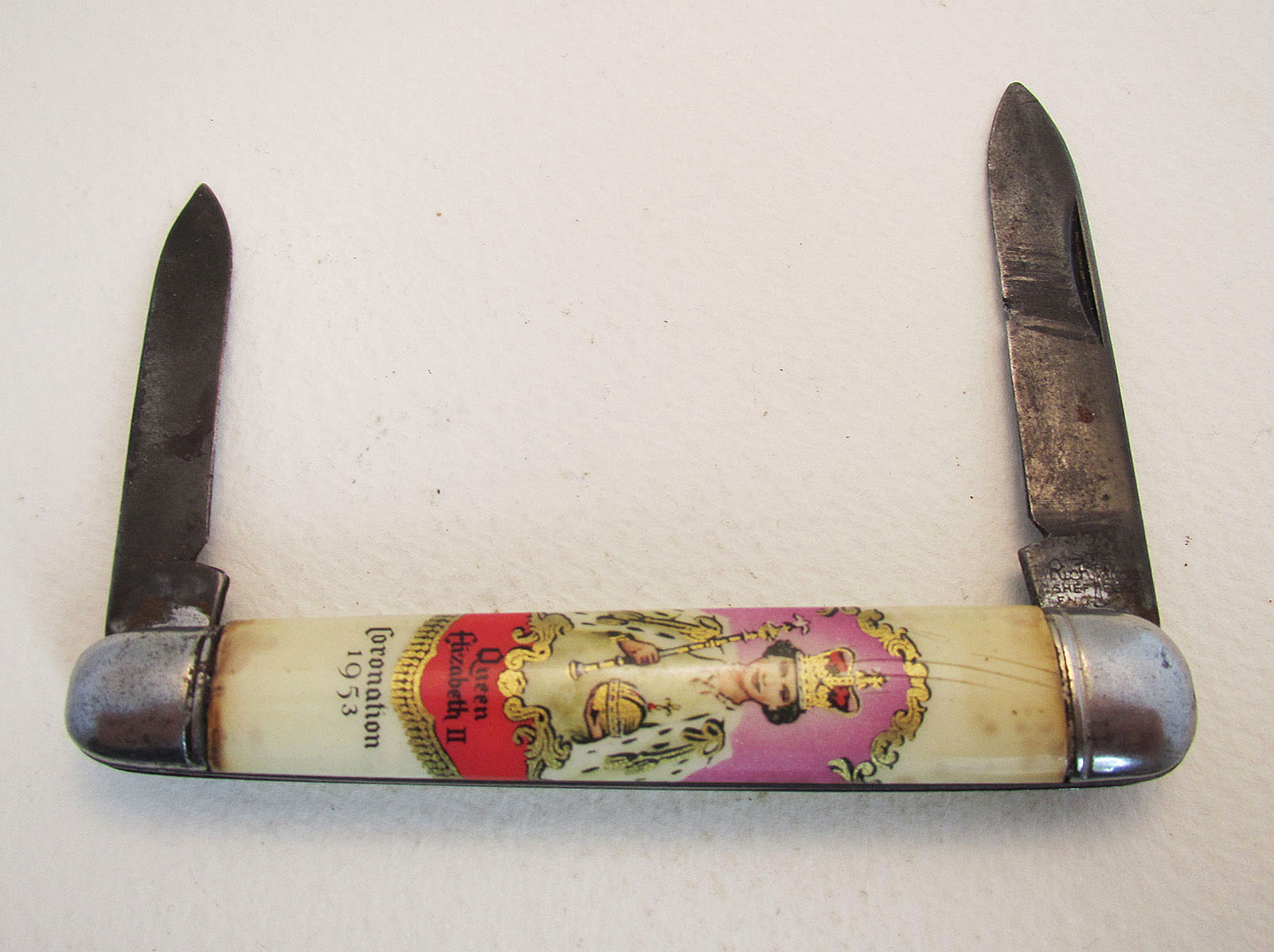 Vintage Queen Elizabeth II Coronation 1953 Novelty Double Folding Fruit Knife / Penknife. Richards Sheffield England