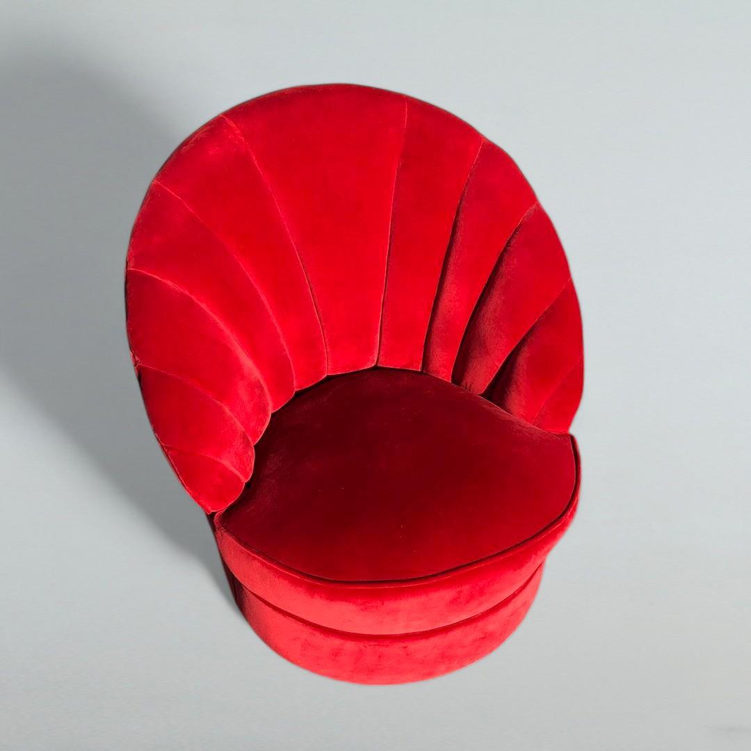 Vintage Red Velvet Art Deco Tub Armchair