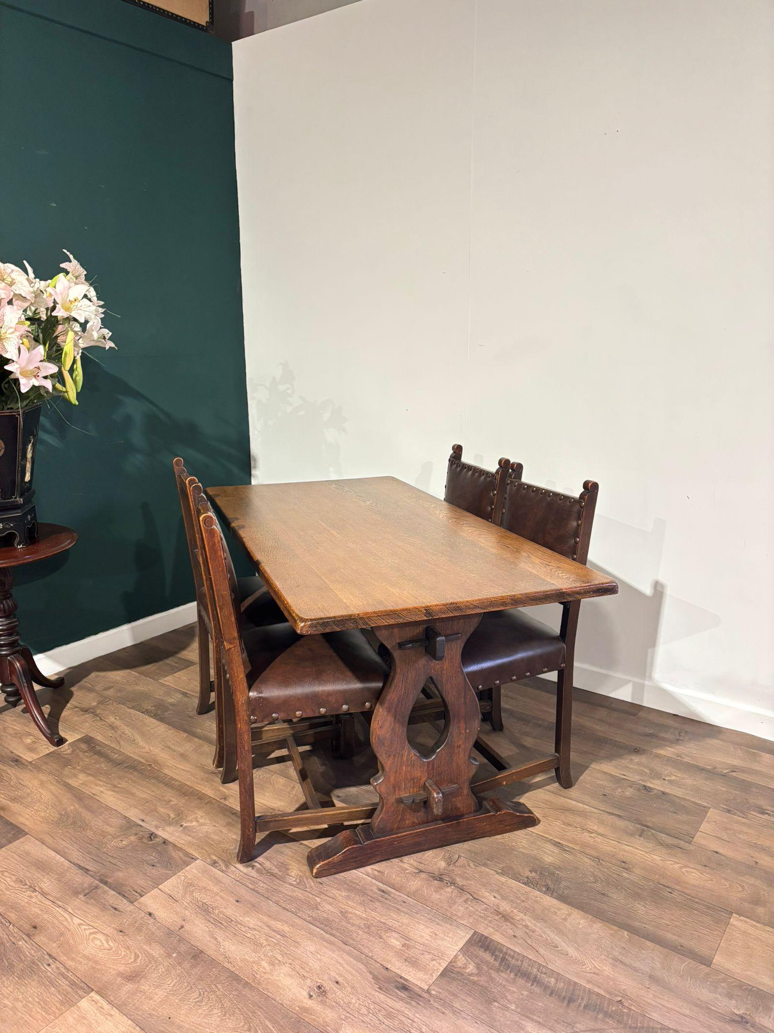Vintage Refectory Dining Room Table with Four Solid Dining Chairs