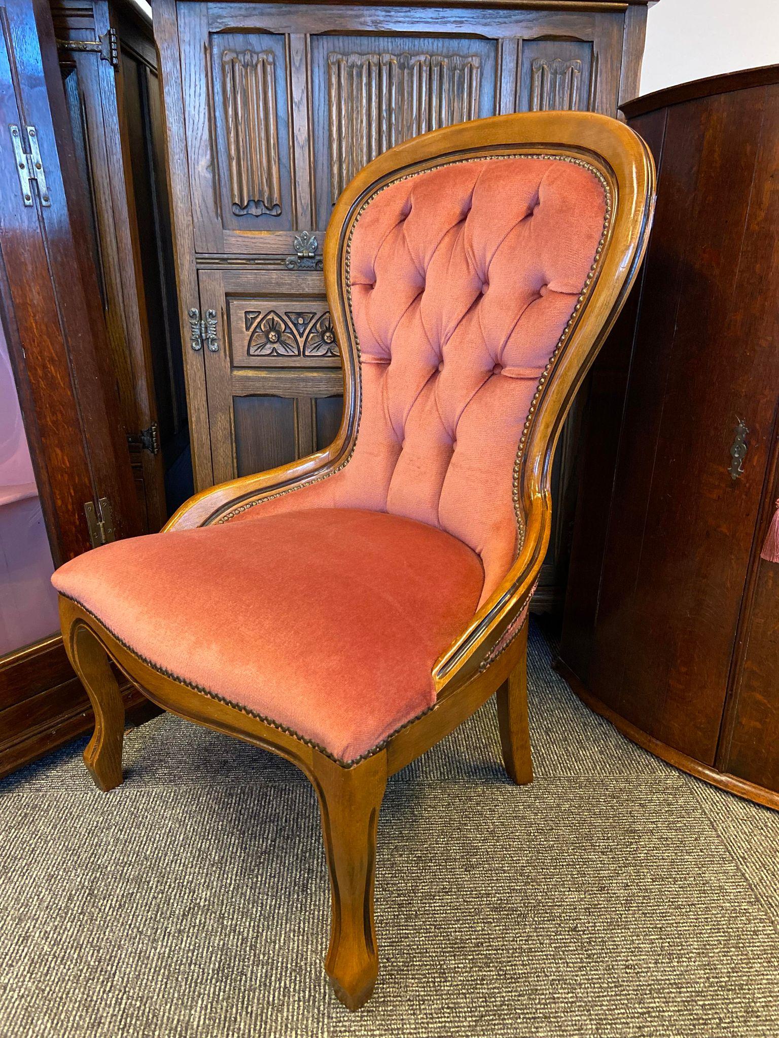Vintage Regency Style Petite Button Backed Bedroom Vanity Chair in Pink Made in England