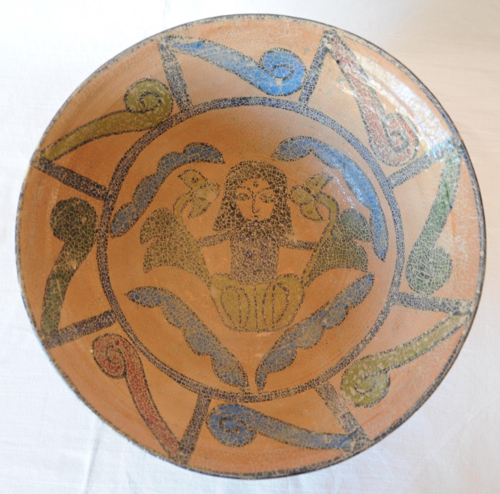 Vintage Reproduction of Ancient Persian or Near Eastern Islamic Glazed Terracotta Bowl