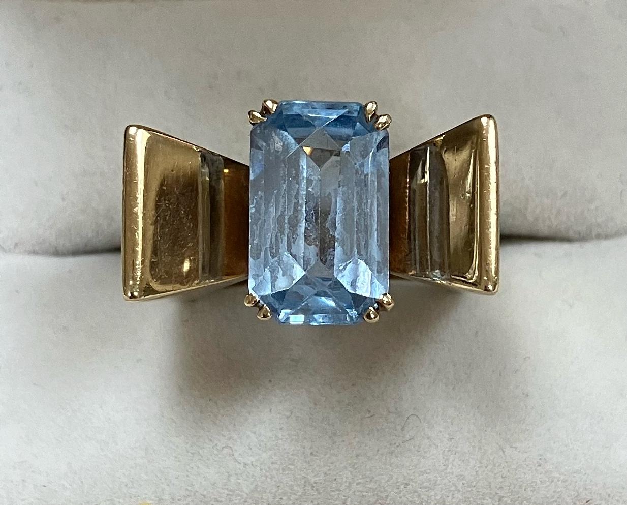 Vintage Retro 1940's 18ct Gold Aquamarine Cocktail Diamond Ring - Size J 1/2