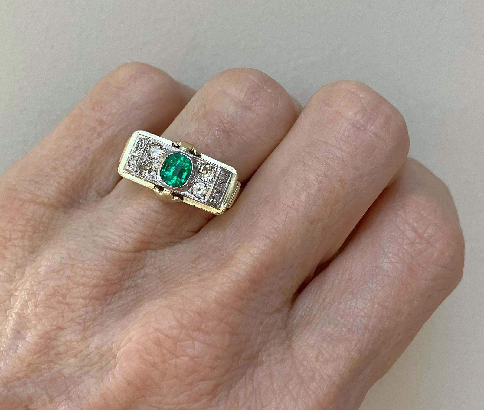 Vintage Retro 1940's French 14ct Gold Emerald Diamond Ring - Size K