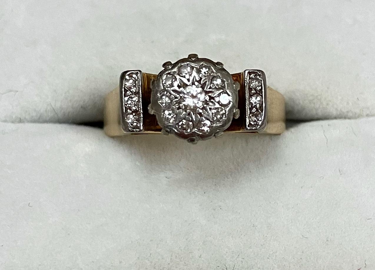 Vintage Retro Art Deco 18ct Gold & Palladium 1940's Diamond Ring - Size K
