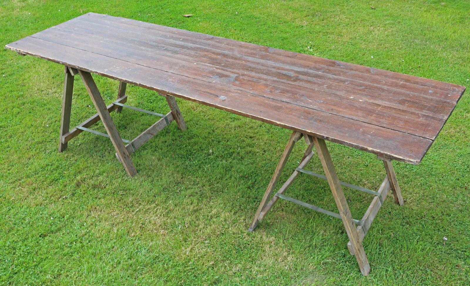 Vintage Retro Refectory Trestle Kitchen Garden Dining Table Mid 20th Century