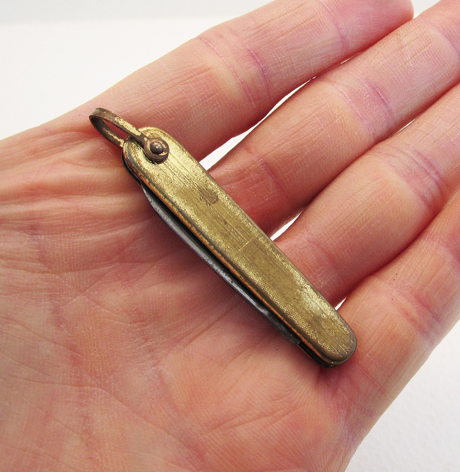 Vintage Richards Sheffield England Small Miniature Gilt Gold Colour Metal Folding Fruit Knife Penknife