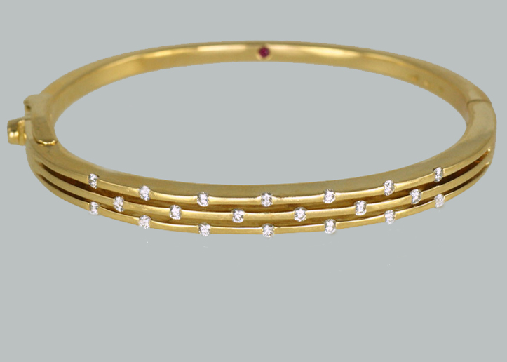 Vintage Roberto Coin Bangle Classica Parisienne 18ct Yellow Gold 3 Row 0.60ct Diamond