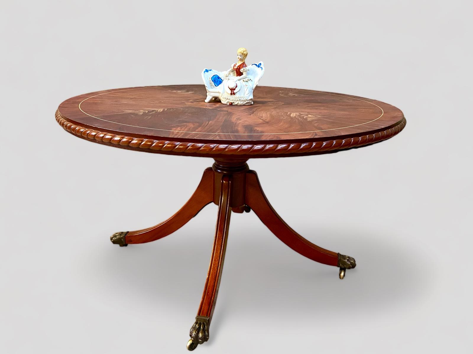Vintage Round Flame Mahogany Pedestal Georgian Style Coffee Table / Made in England c.1970