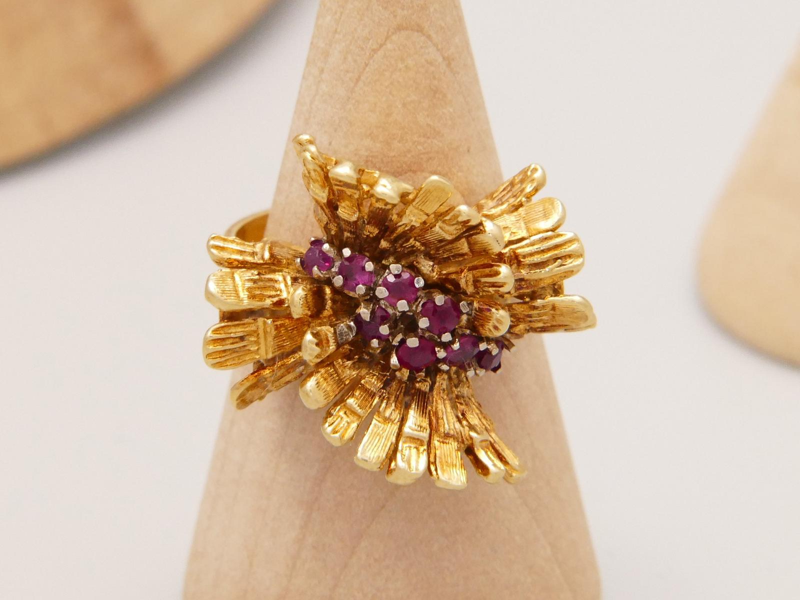 Vintage Ruby Cluster Ring in Yellow 18ct Gold Attrib. Andrew Grima 1960s