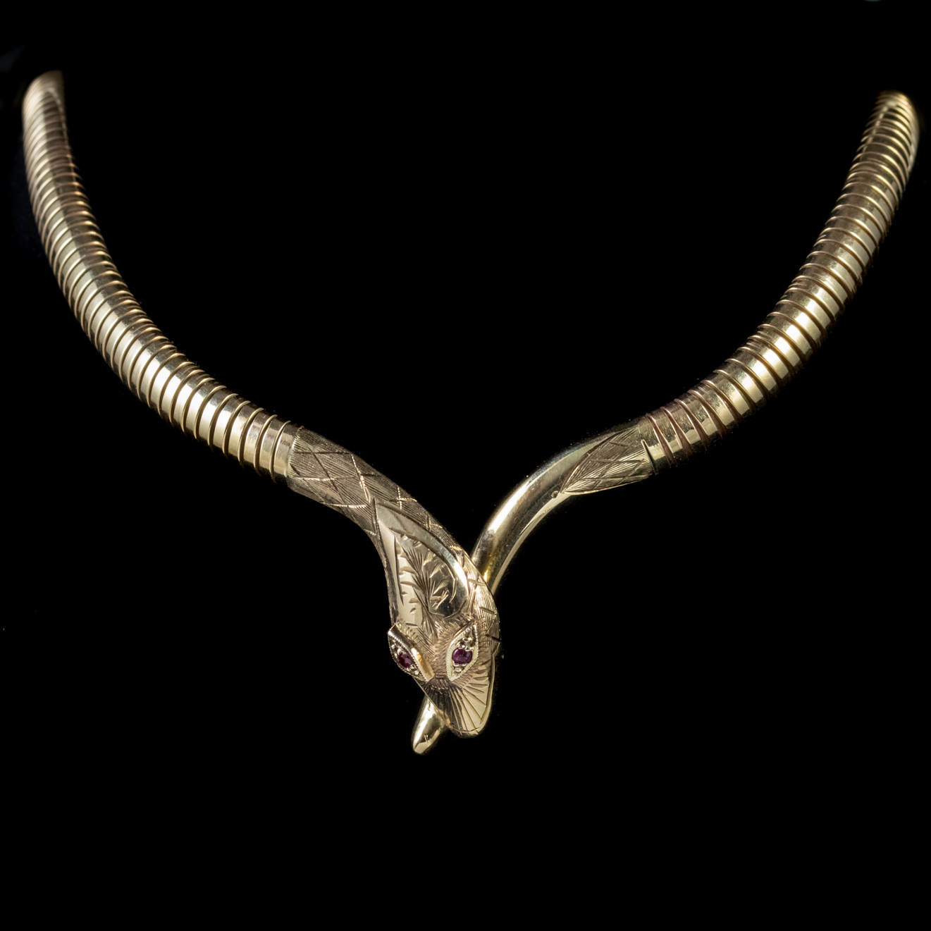 Vintage Ruby Snake Collar Necklace 9ct Gold Dated 1976