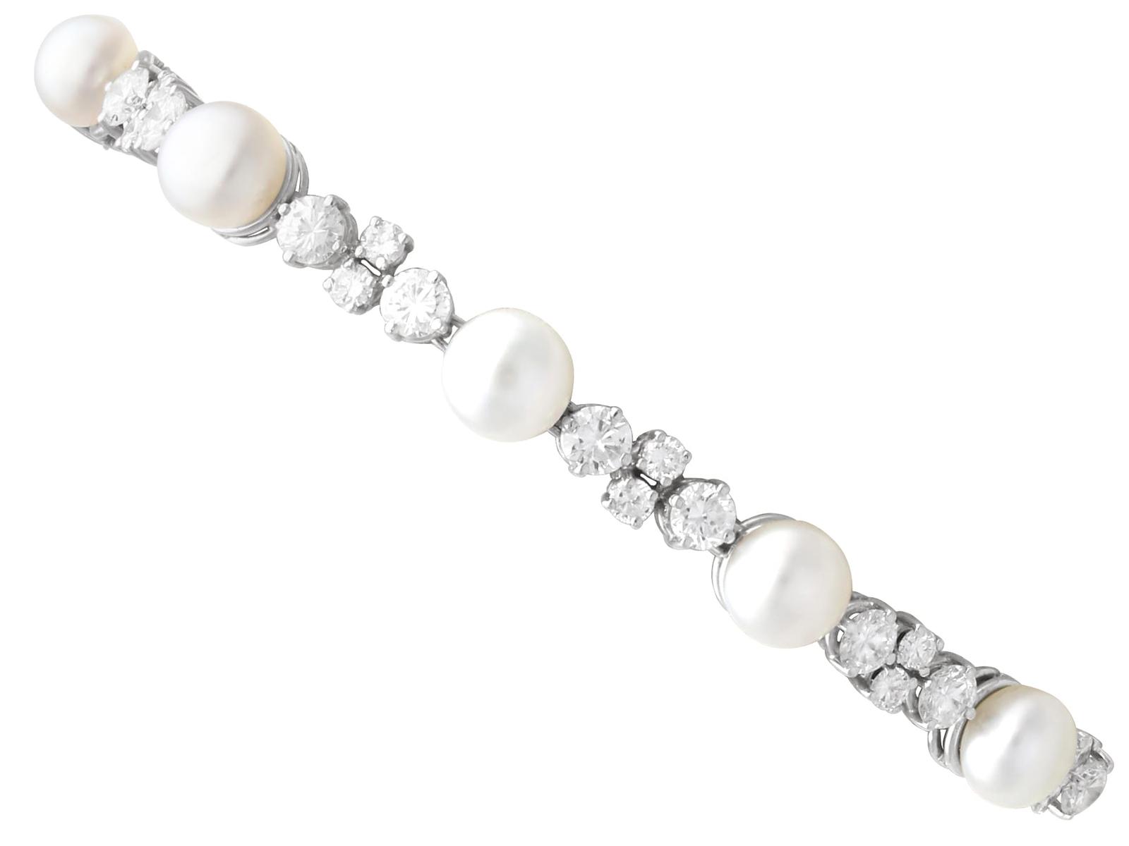 Vintage Saltwater Pearl and 1.90ct Diamond, 18k White Gold Bracelet Circa 1960 (1 of 14)