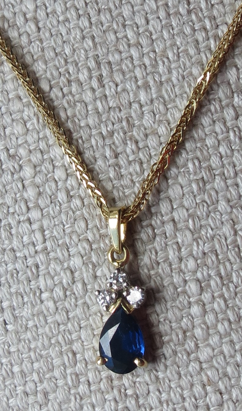 Vintage Sapphire, Diamond and 18ct Gold Pendant and Chain (1 of 14)