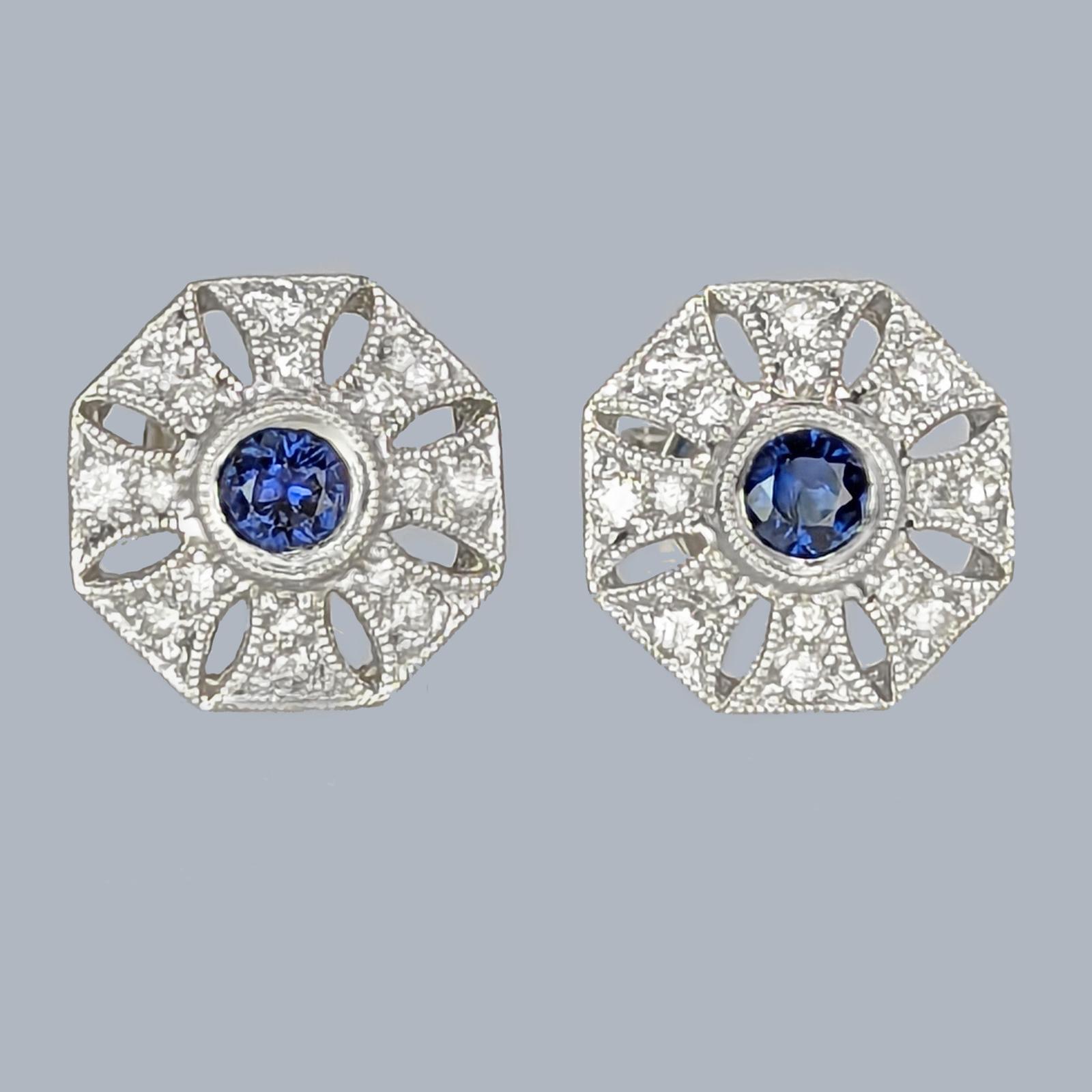 Vintage Sapphire Diamond Cluster Earrings 18ct Gold 1980s Post Floral Earrings (1 of 7)