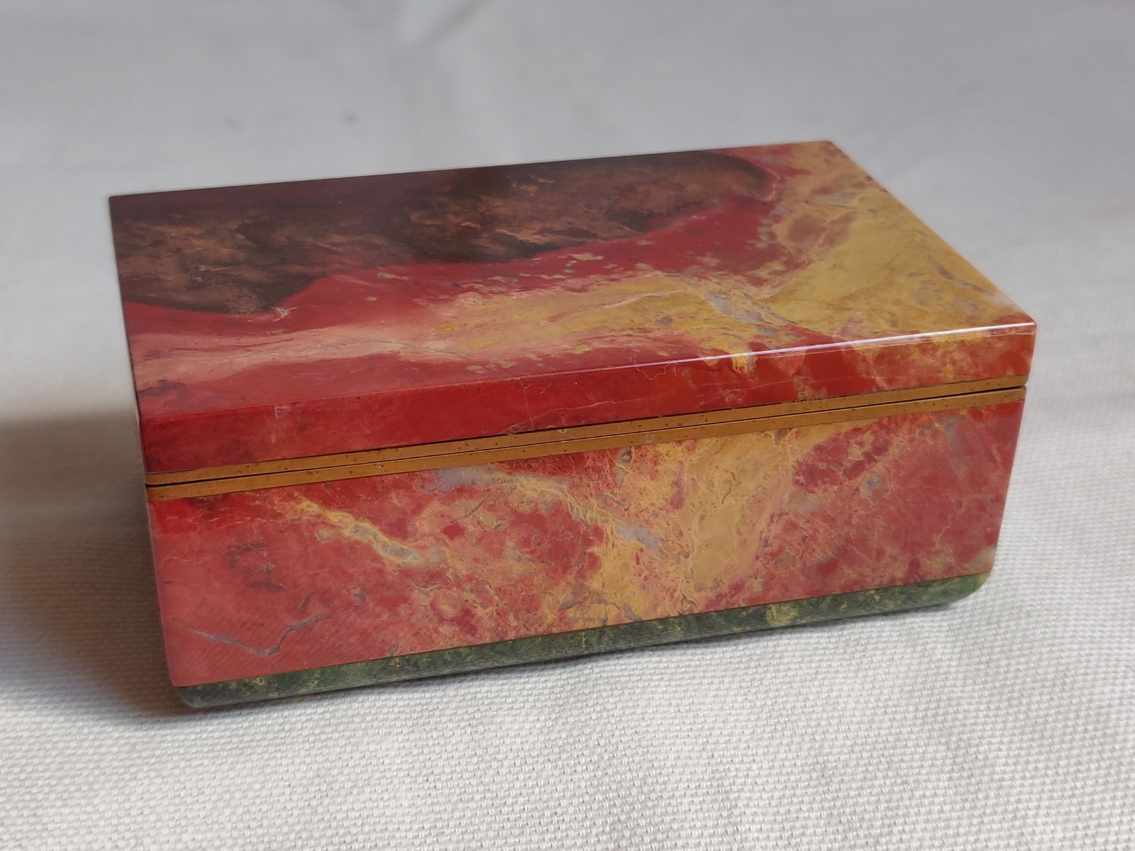 Vintage Semi Precious Stones Casket Box Landscape Jasper / Orsk Russia Minefields