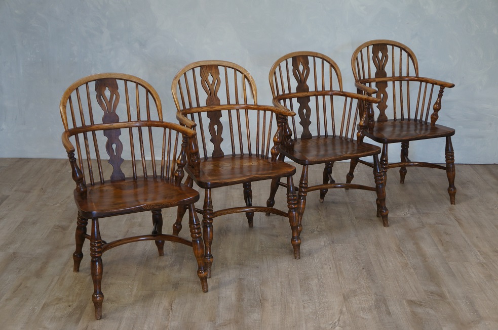 Vintage Set of 4 Ash & Elm Windsor Chairs