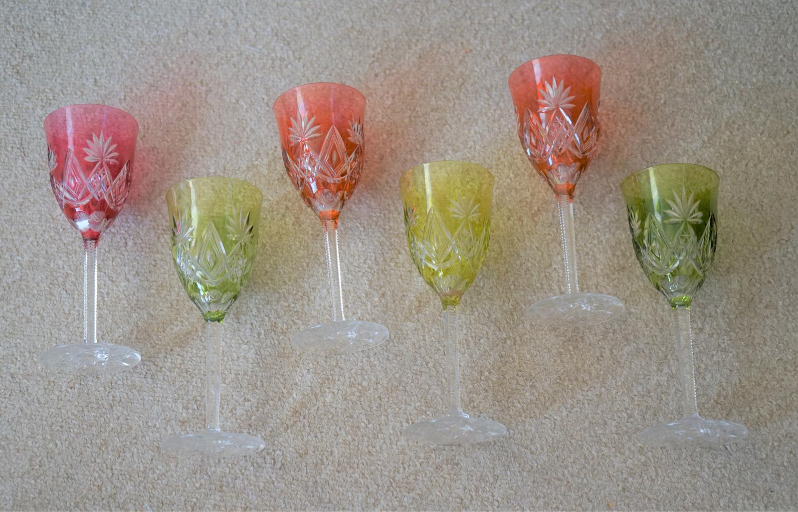 Vintage Set of Six Bavarian Colour Hock Glasses