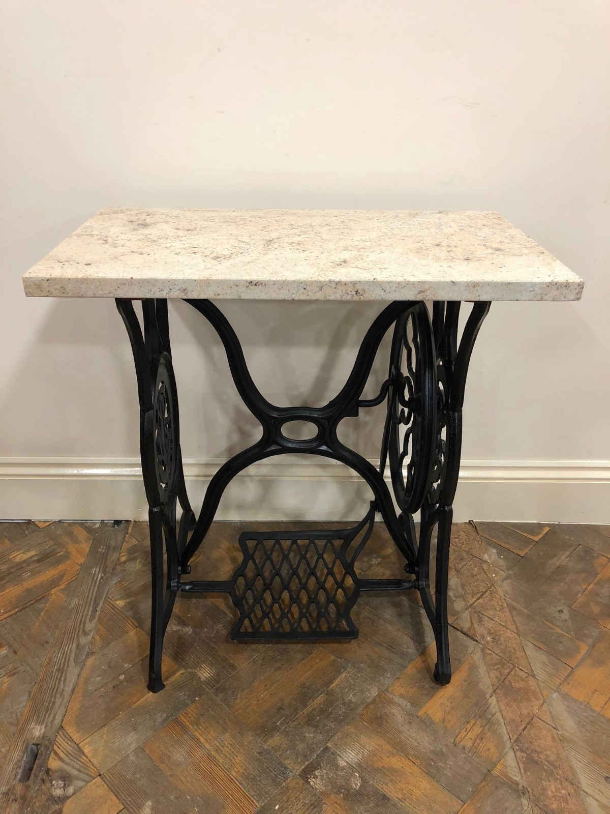 Vintage Sewing Machine Treadle Table with Marble Top (1 of 1)