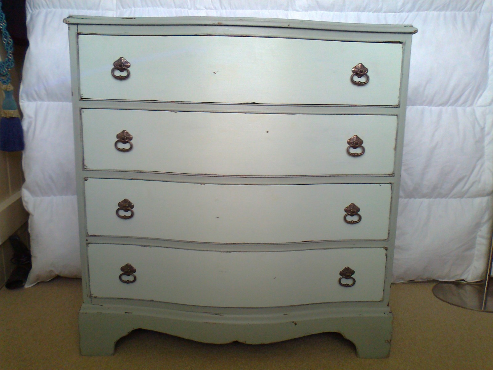 Vintage Shabby Chic Bow Fronted Four Drawer Chest of Drawers