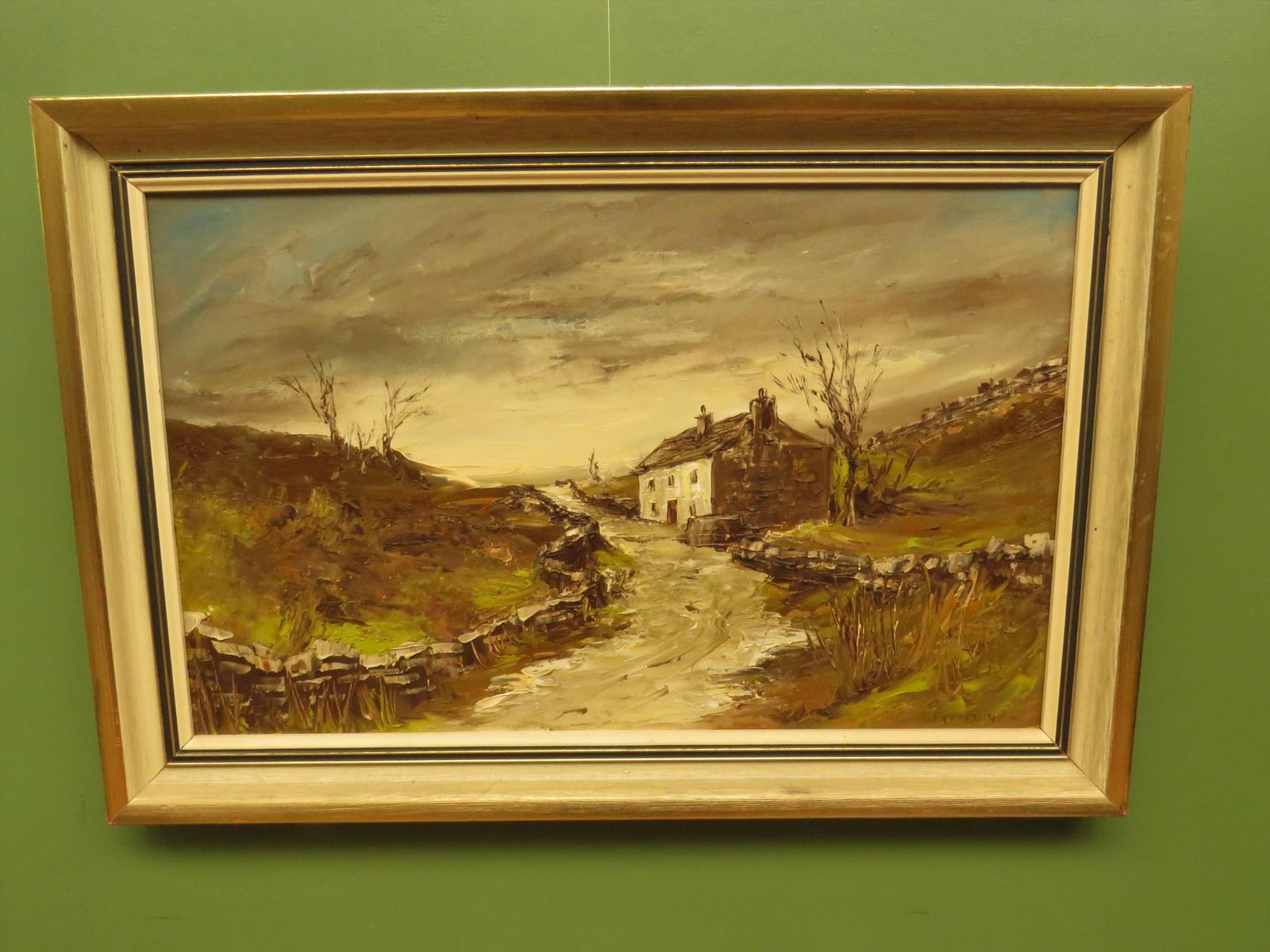 Vintage Signed Oil on Board of Haworth Moor, Emily Bronte, Wuthering Heights