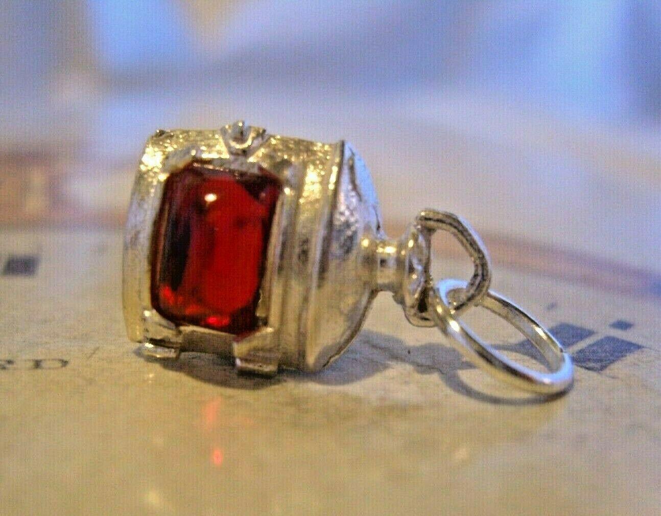 Vintage Silver 925 Miniature Ships Lantern Fob 1960s Red Glass Fob