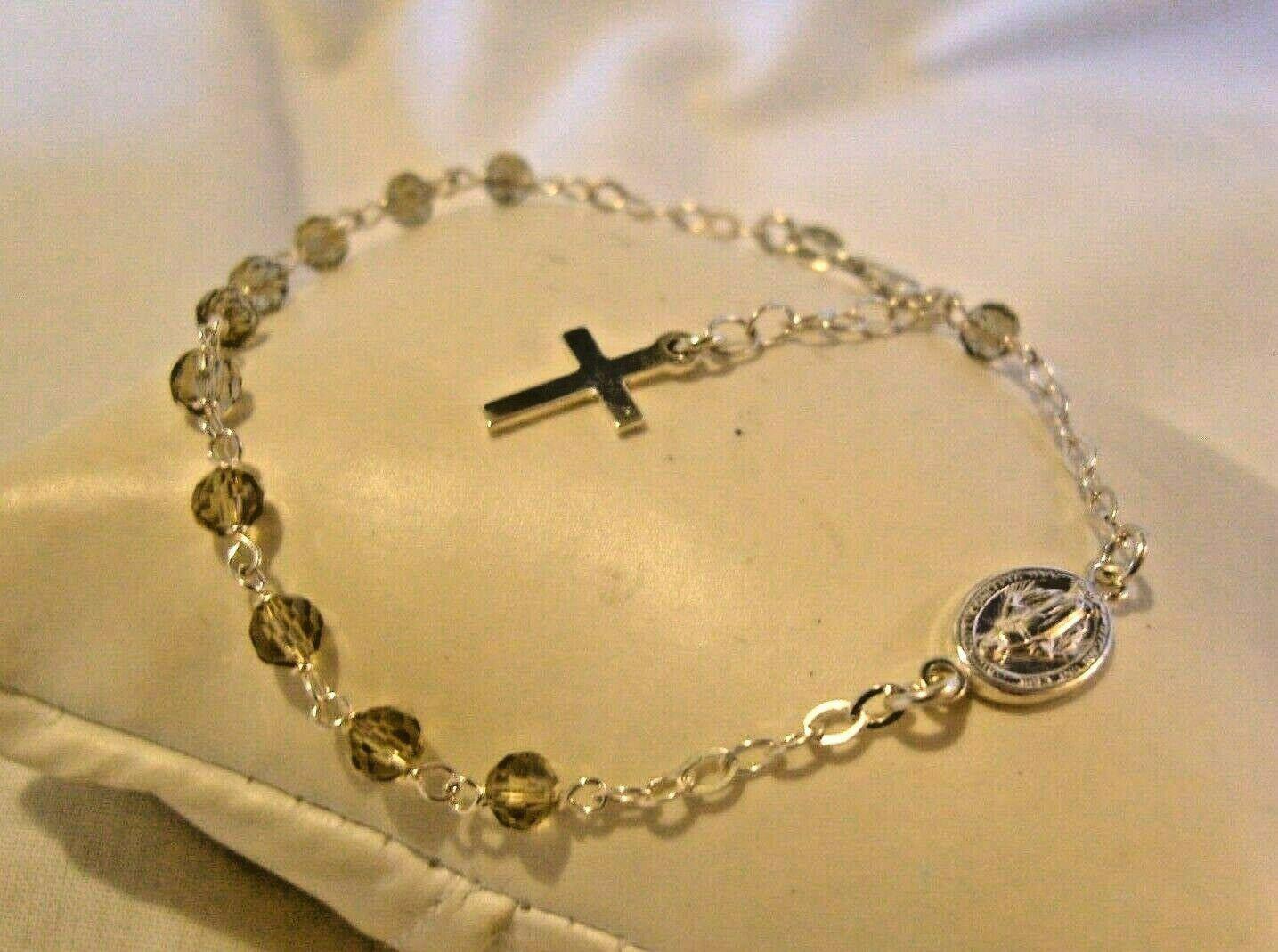 Vintage Silver 925 Religious Bracelet 1970s with Crucifix Charm