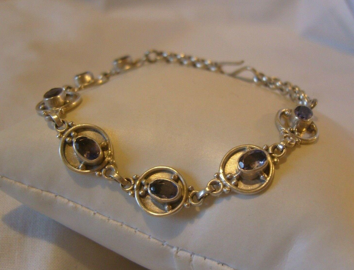 Vintage Silver & Amethyst Bracelet 1970s Art Nouveau Revival 7 1/2" Length