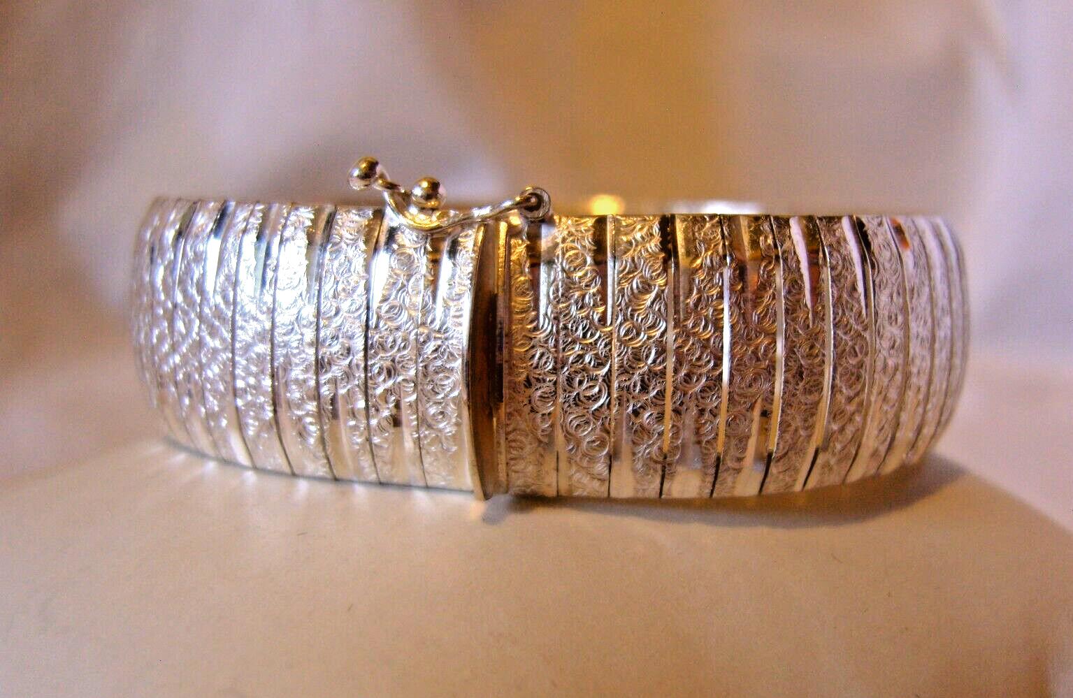 Vintage Silver Bracelet 1970s Wide Diamond Cut Omega Link 7 1/2" Length 26.6g