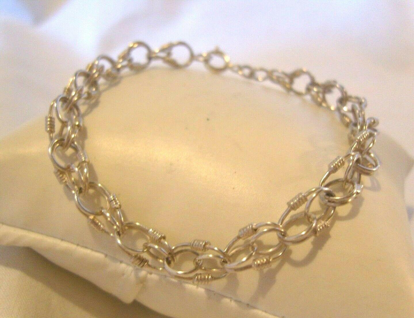 Vintage Silver Bracelet 1970s Wire Coil Links 7 1/4" Length