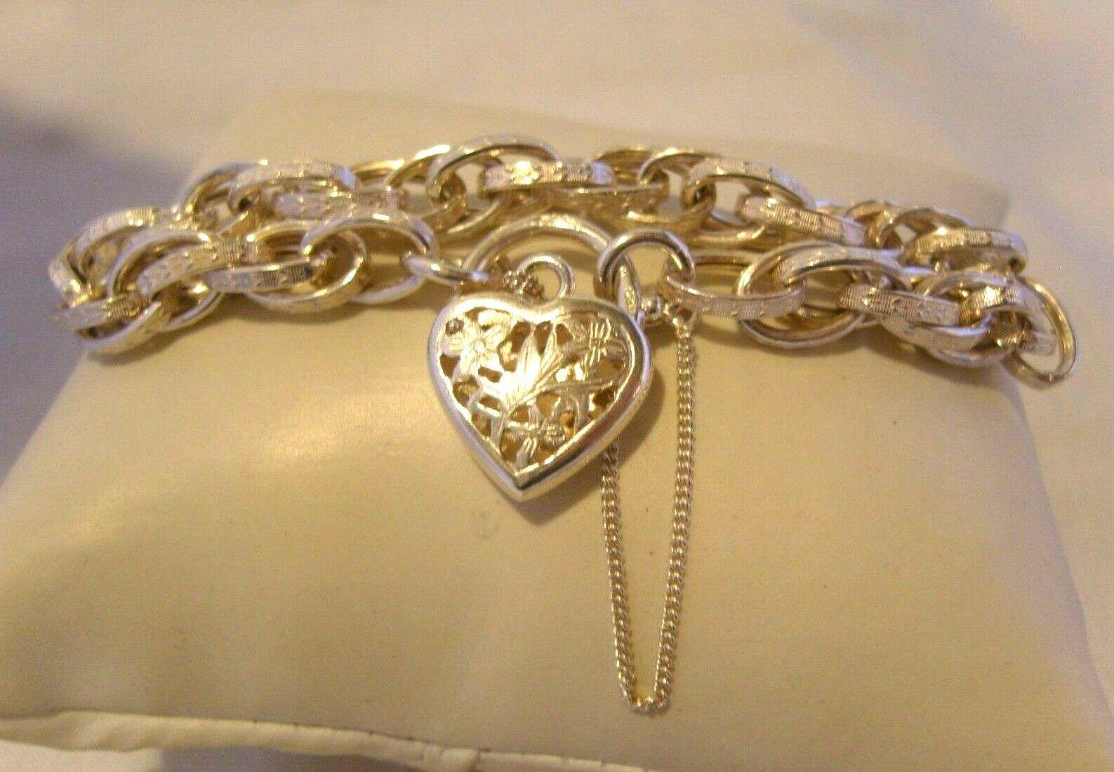 Vintage Silver Bracelet 1980s Large Puffy Love Heart Padlock 7 1/4" Length Heavy 16.5 Grams