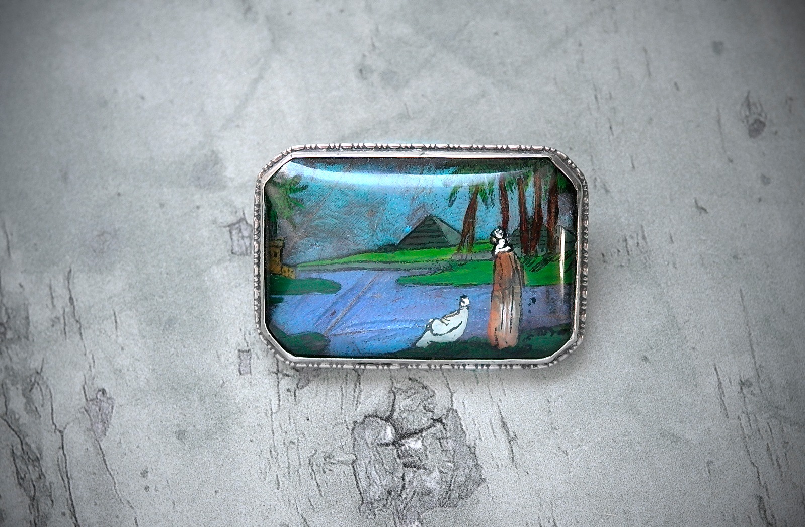 Vintage Silver Butterfly Brooch with Egyptian Landscape, Rare Shipton & Co, 1920s Art Deco, Pyramids & Nile