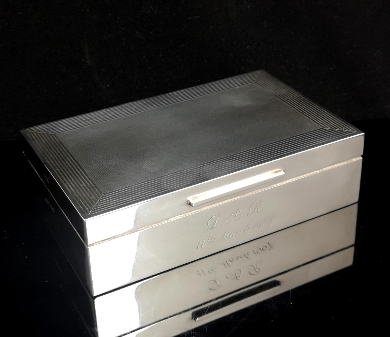 Vintage silver cigarette box engine turned