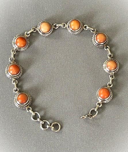 Vintage Silver & Coral Link Bracelet (1 of 5)