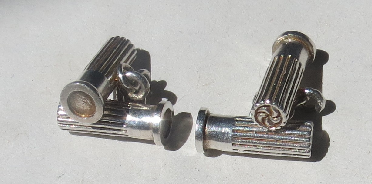 Vintage Silver Cufflinks Formed as Shotgun Cartridges - ca 1980