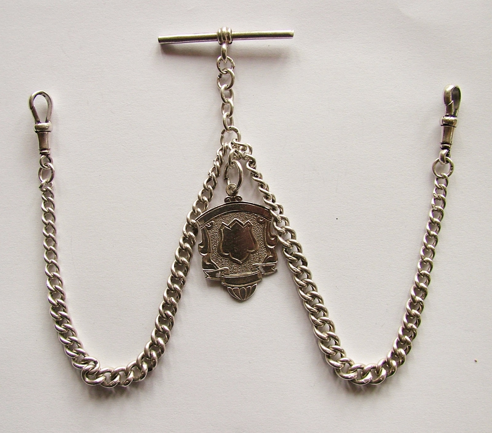 Vintage Silver Double Watch Chain & Fob
