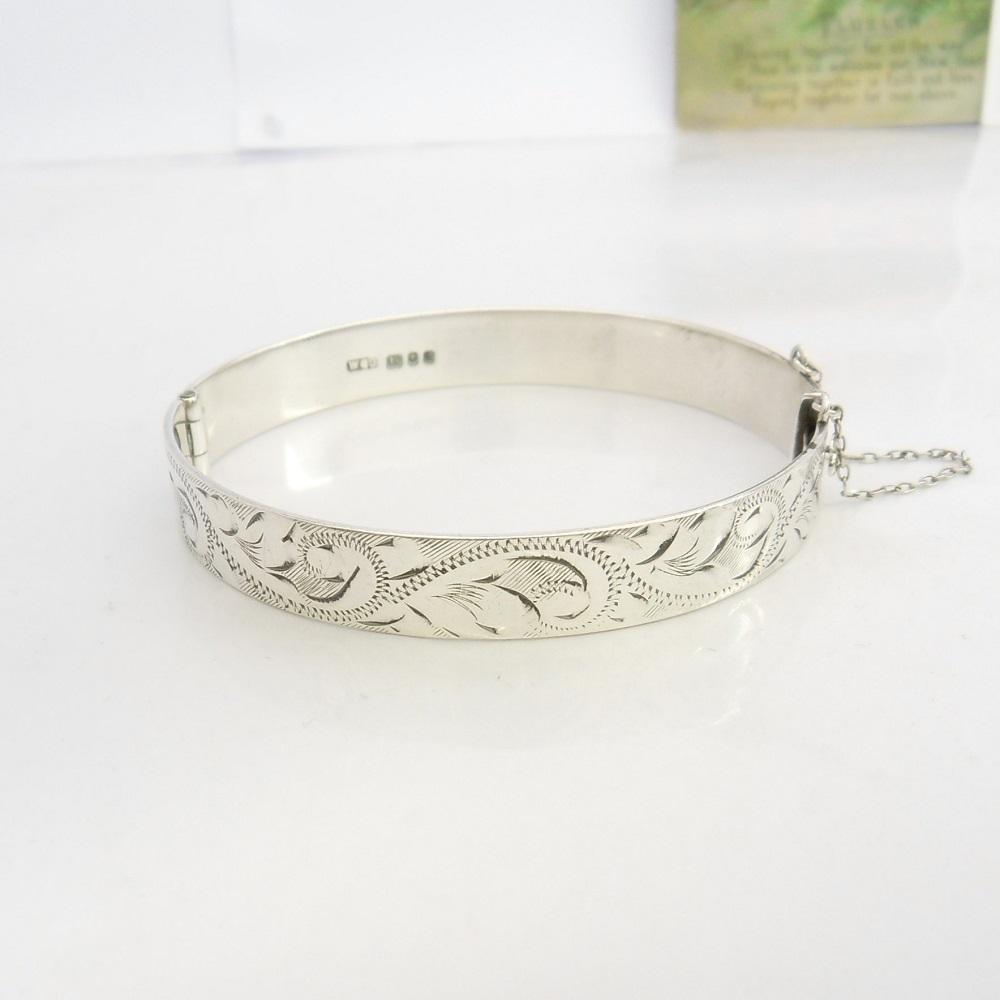 Vintage Silver Engraved Bangle Hallmarked London 1975