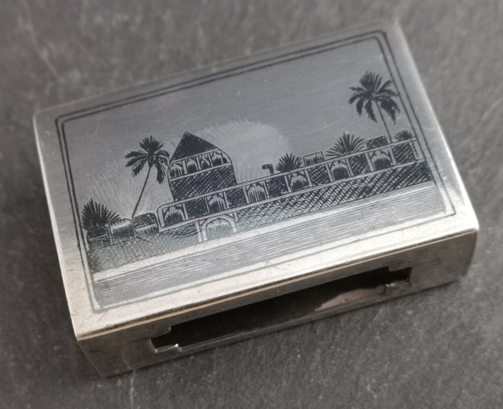 Vintage Silver Niello Matchbox Cover, Match Safe