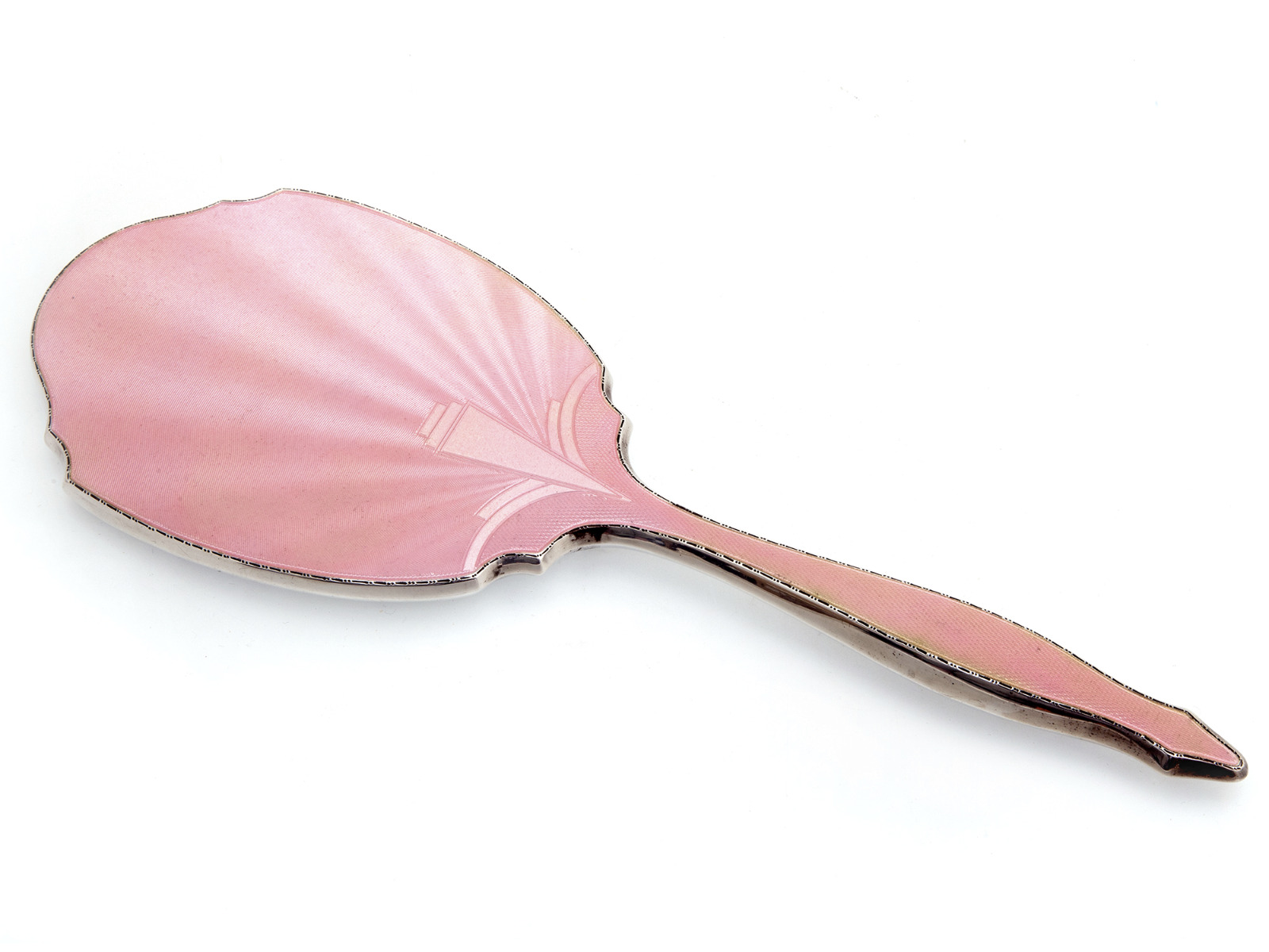 Vintage Silver & Pink Guilloche Enamel Hand Mirror (1 of 1)